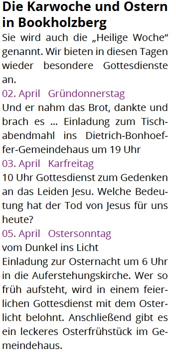 Kinderkirche in Bookholzberg